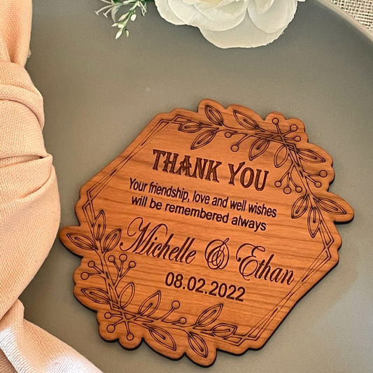 Wooden Floral Hexagone Thank You Card For Wedding Decoration
