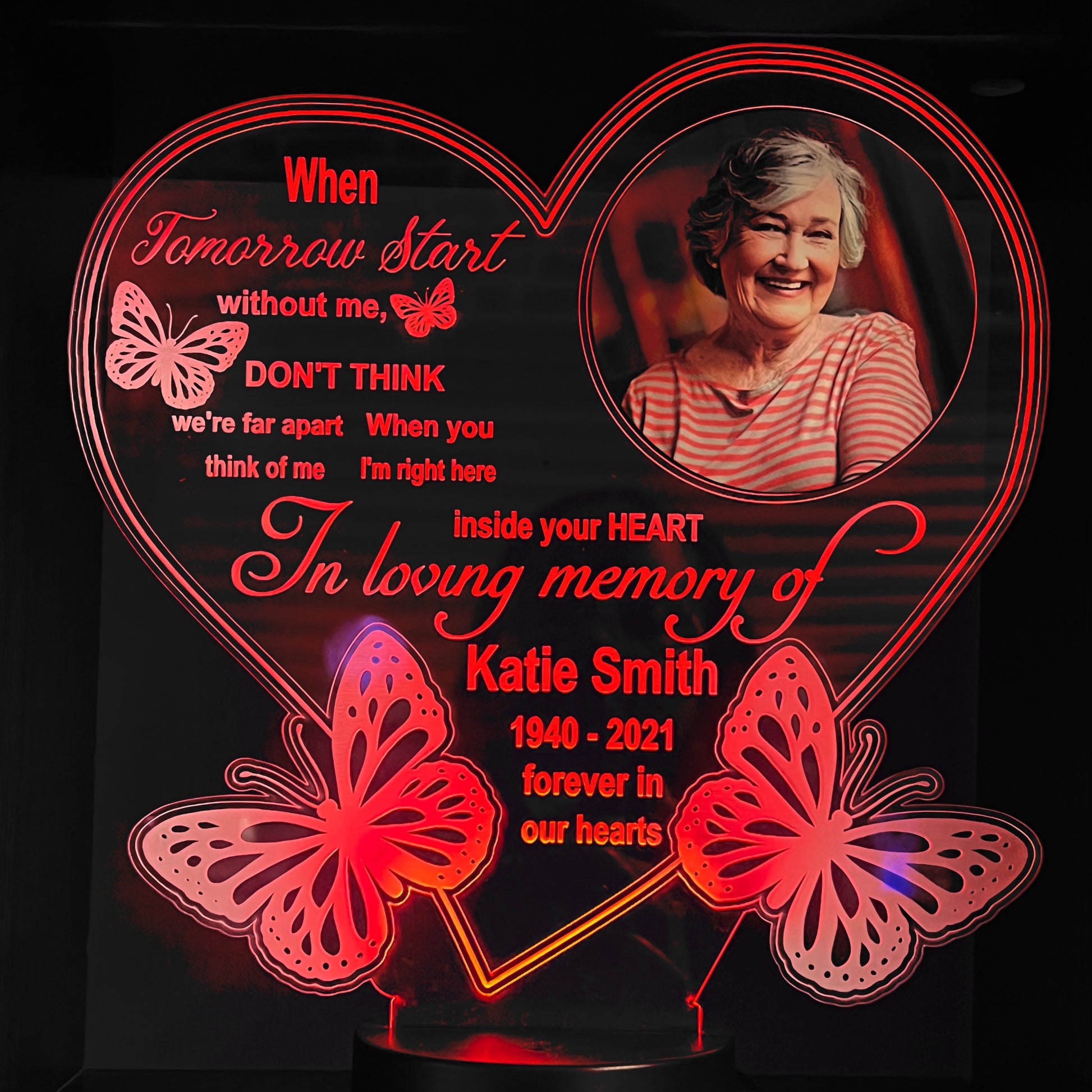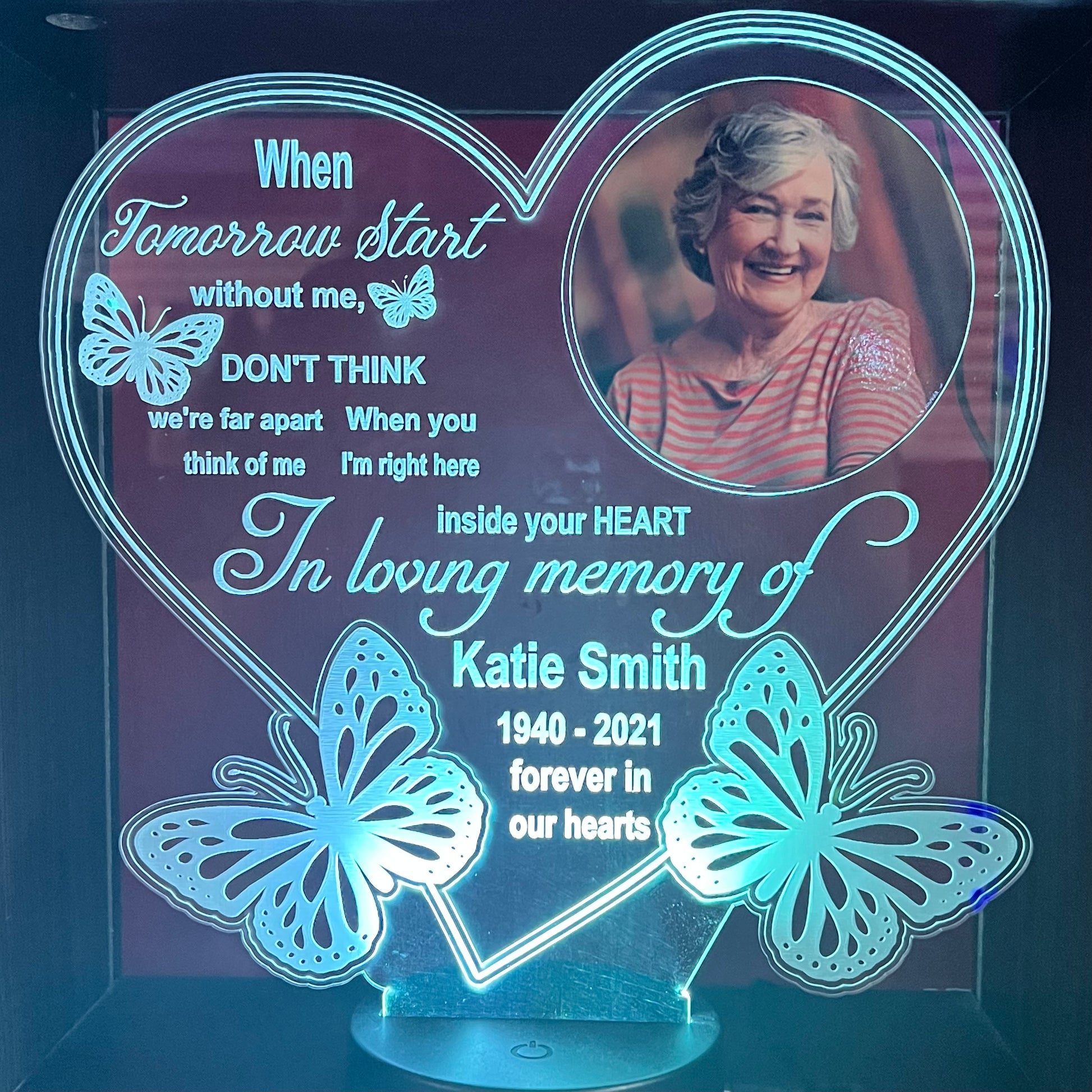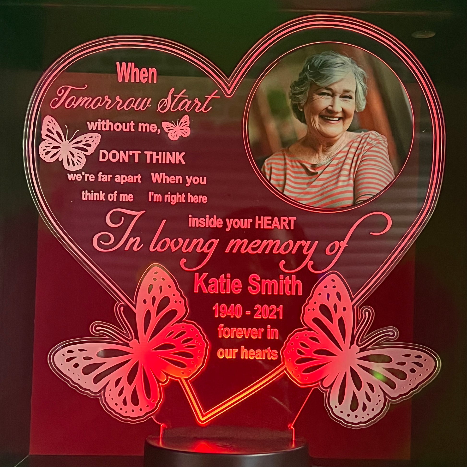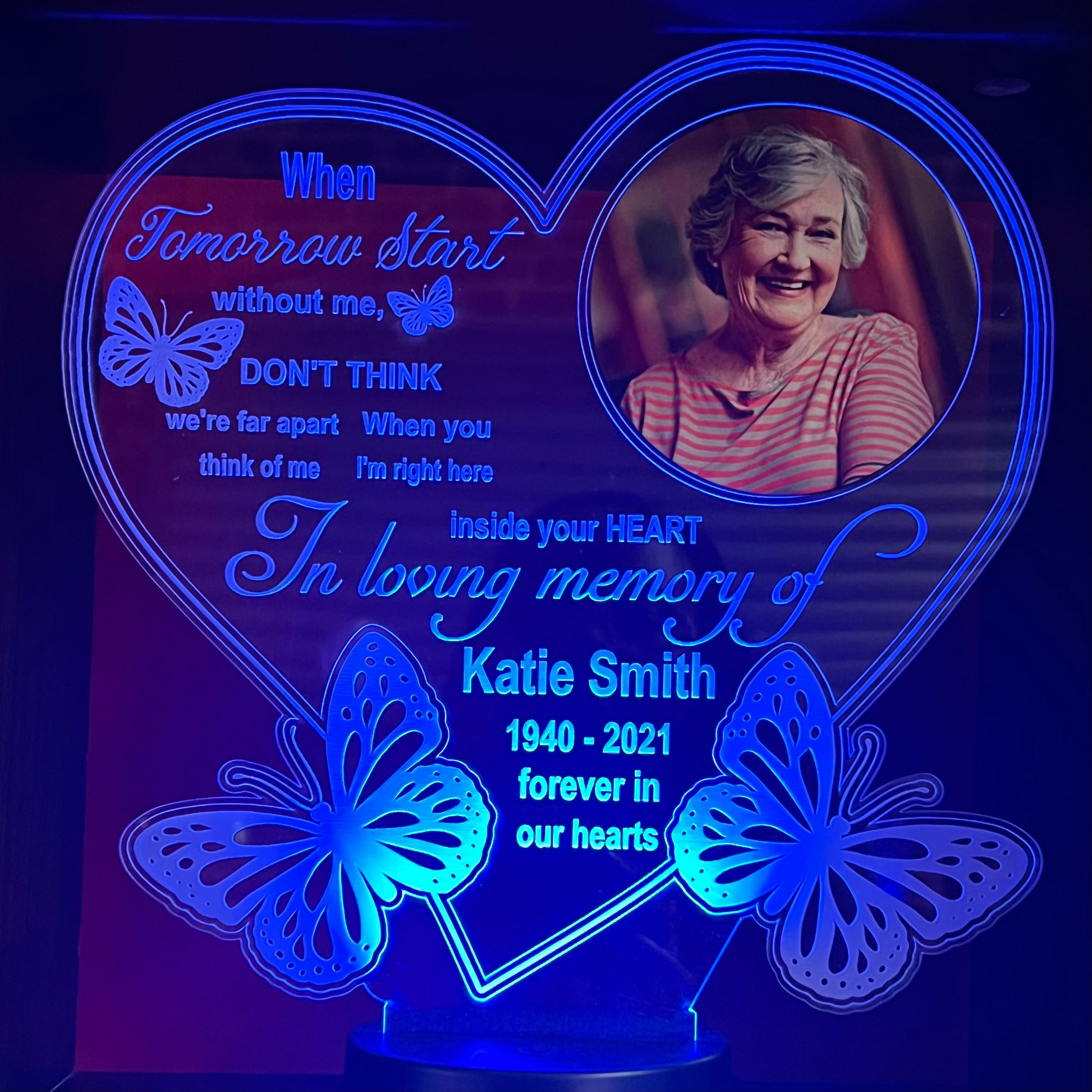 Make this beautiful LED lamp yours by providing the picture, name and dates you want to display...At RedLaze, we will do the rest and ensure you have the perfect memorial gift to celebrate the life of your loved one.