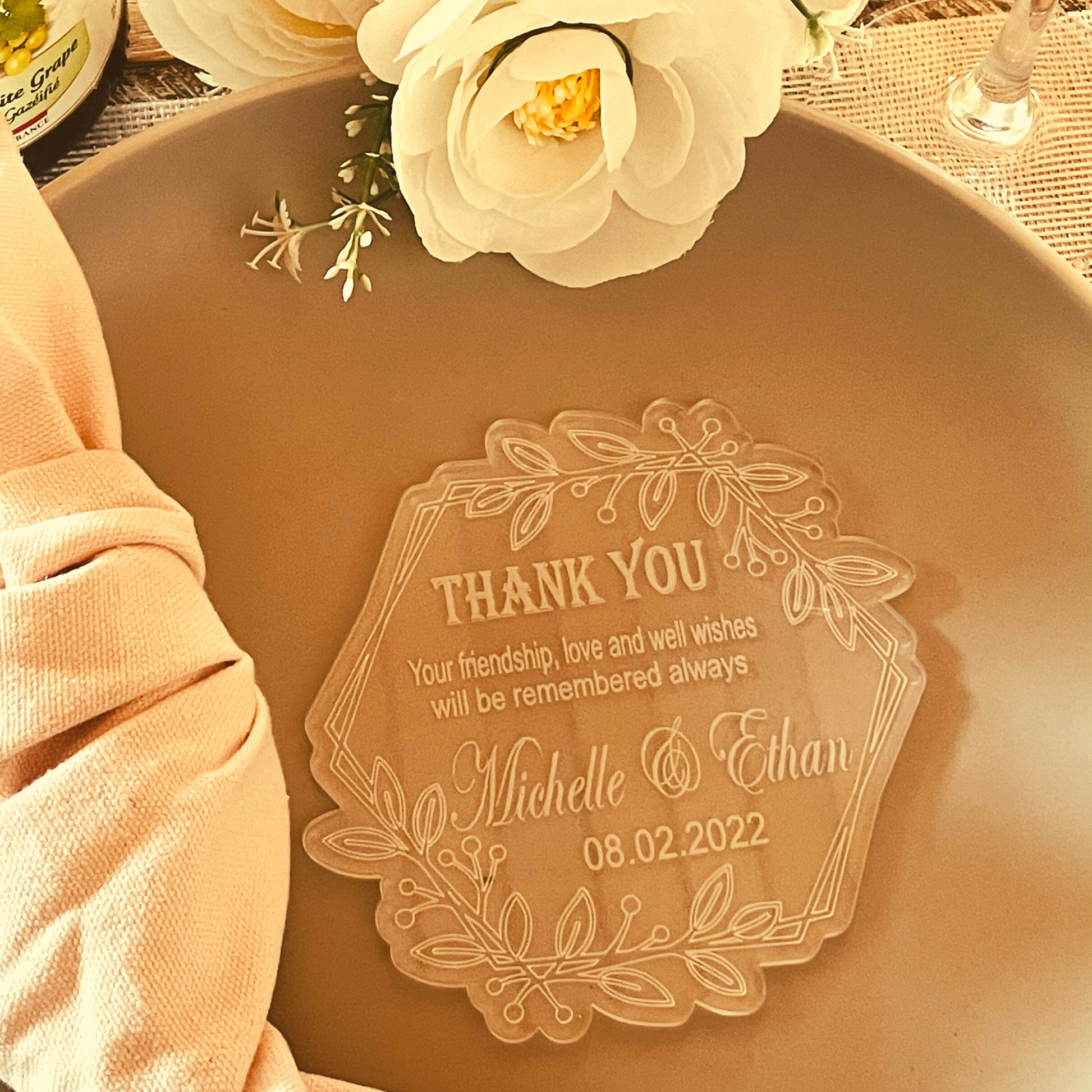 This Thank You card made on Clear Acrylic 3mm is just perfect for saying more than just "thank you" at the end of the day...it is a keepsake which your guests will remember for years to come.