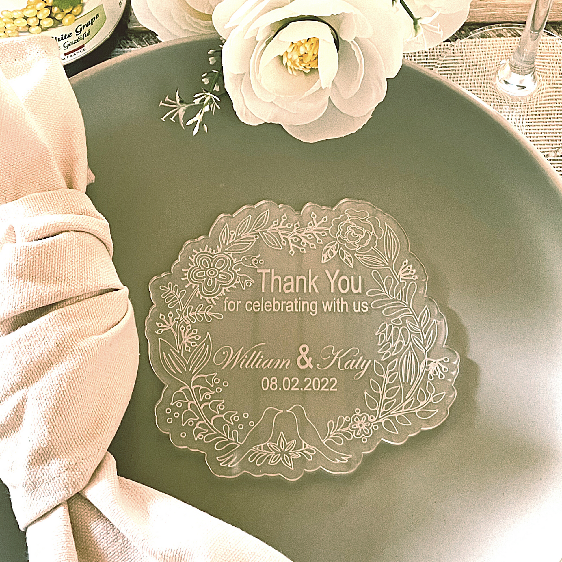 1) Made of premium clear acrylic 3mm so these guest names will dress your wedding tables with a fine touch.