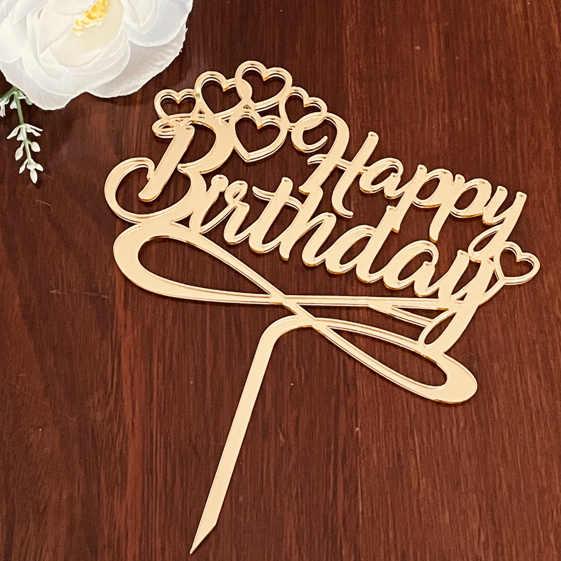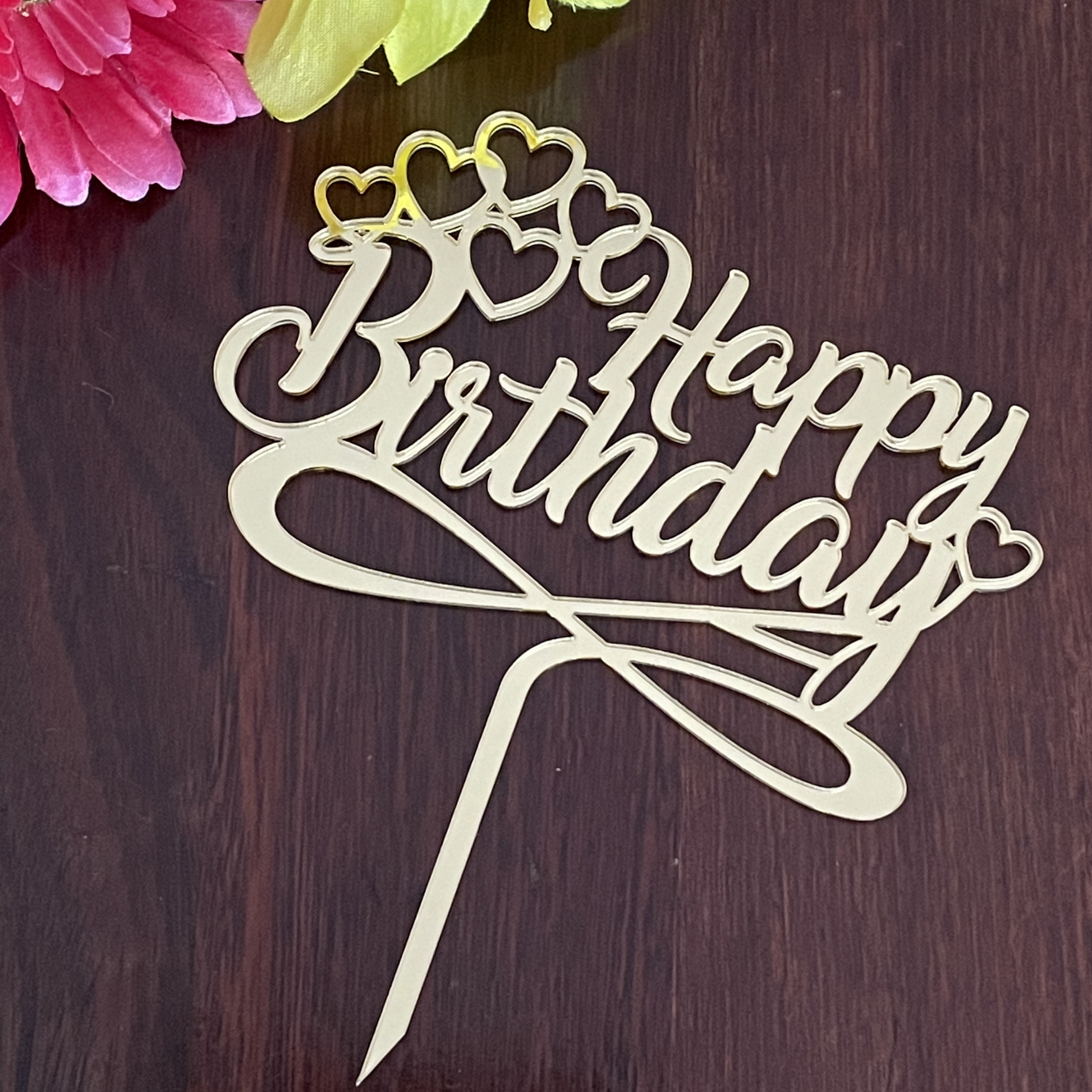 Made of sturdy gold mirror acrylic, this cake topper will stand out in any cake you place it and it is perfect for celebrating a Happy Birthday like your loved ones deserve.