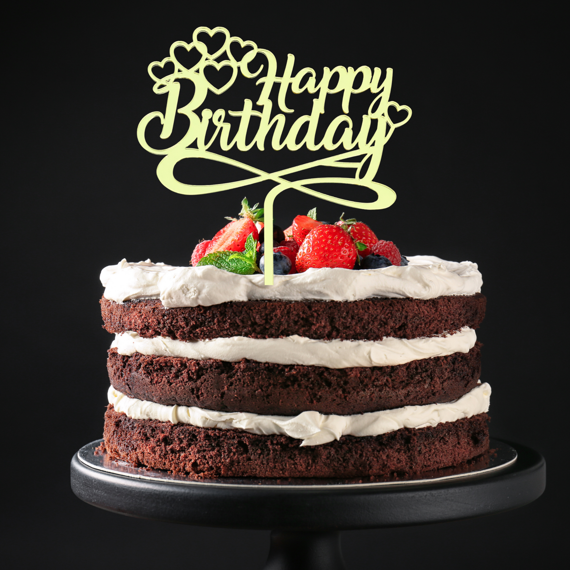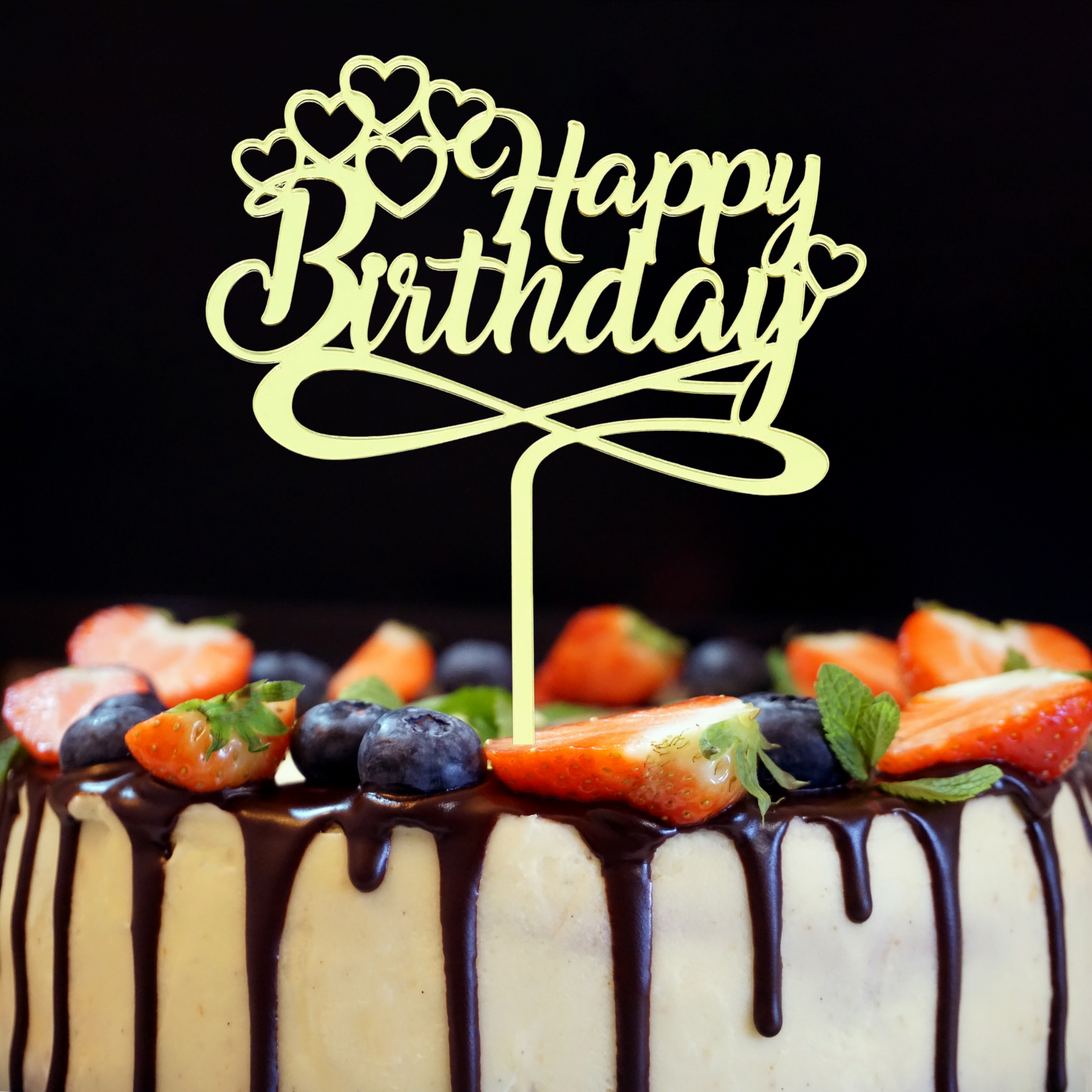 Happy Birthday Cake Topper With Hearts