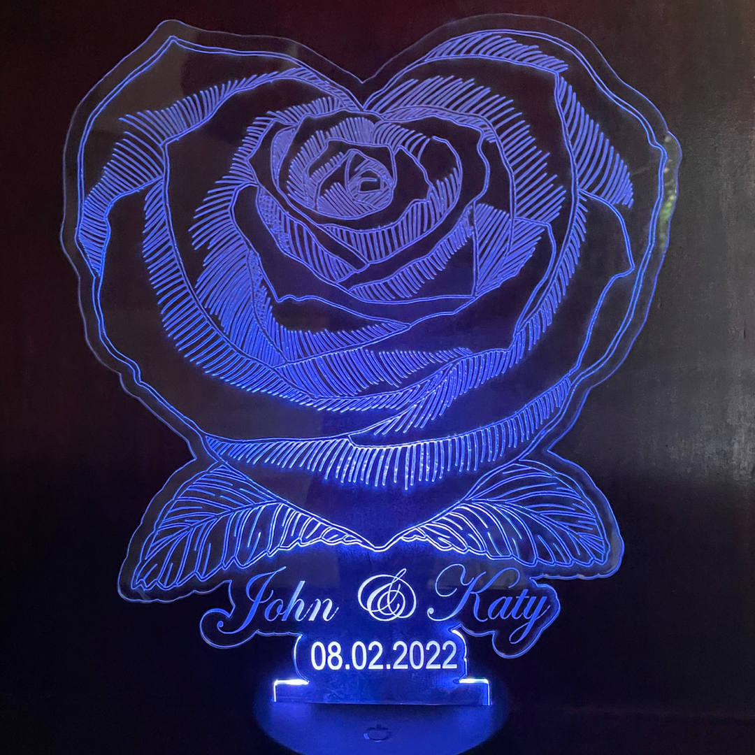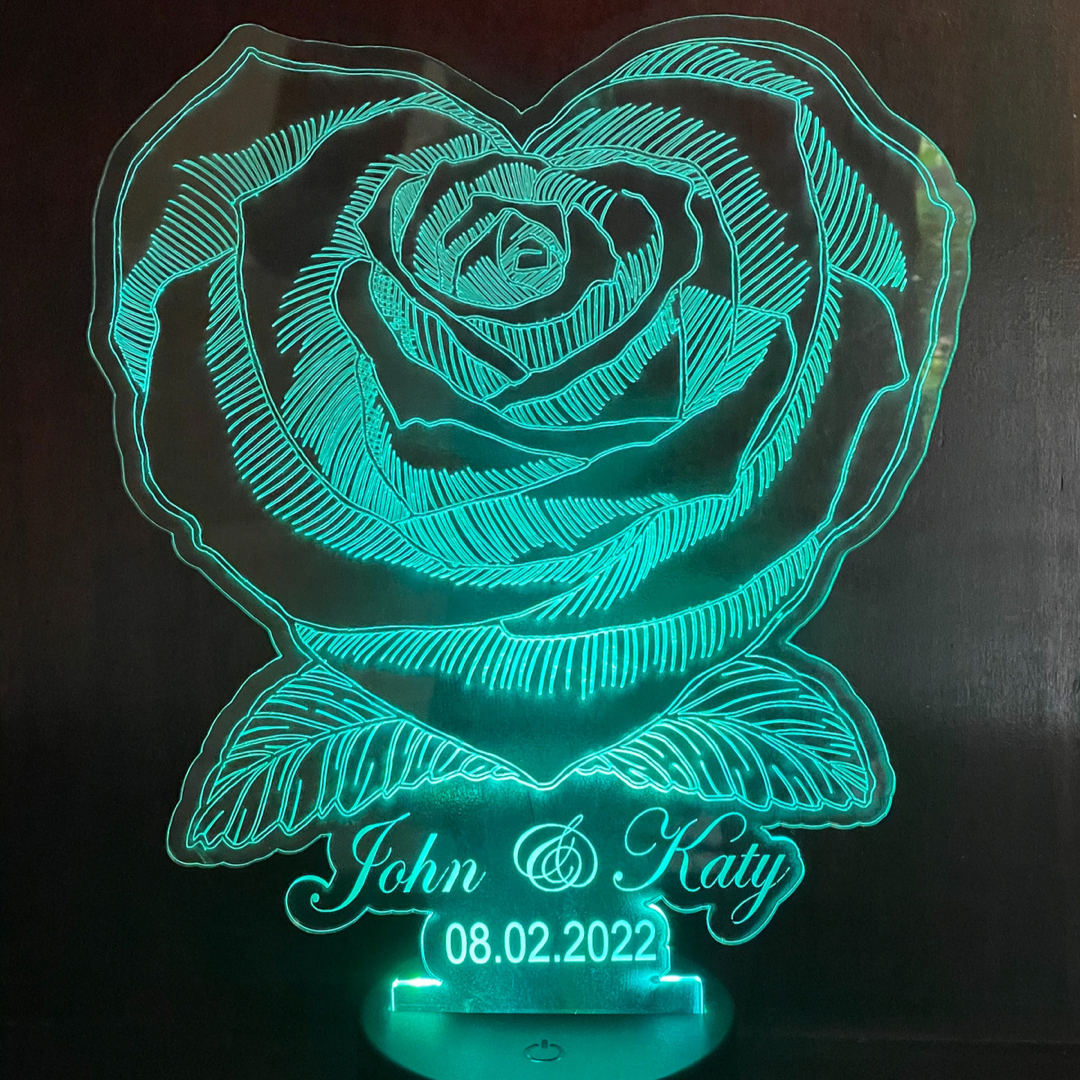 Rose LED Lamp Personalised with Names and Dates