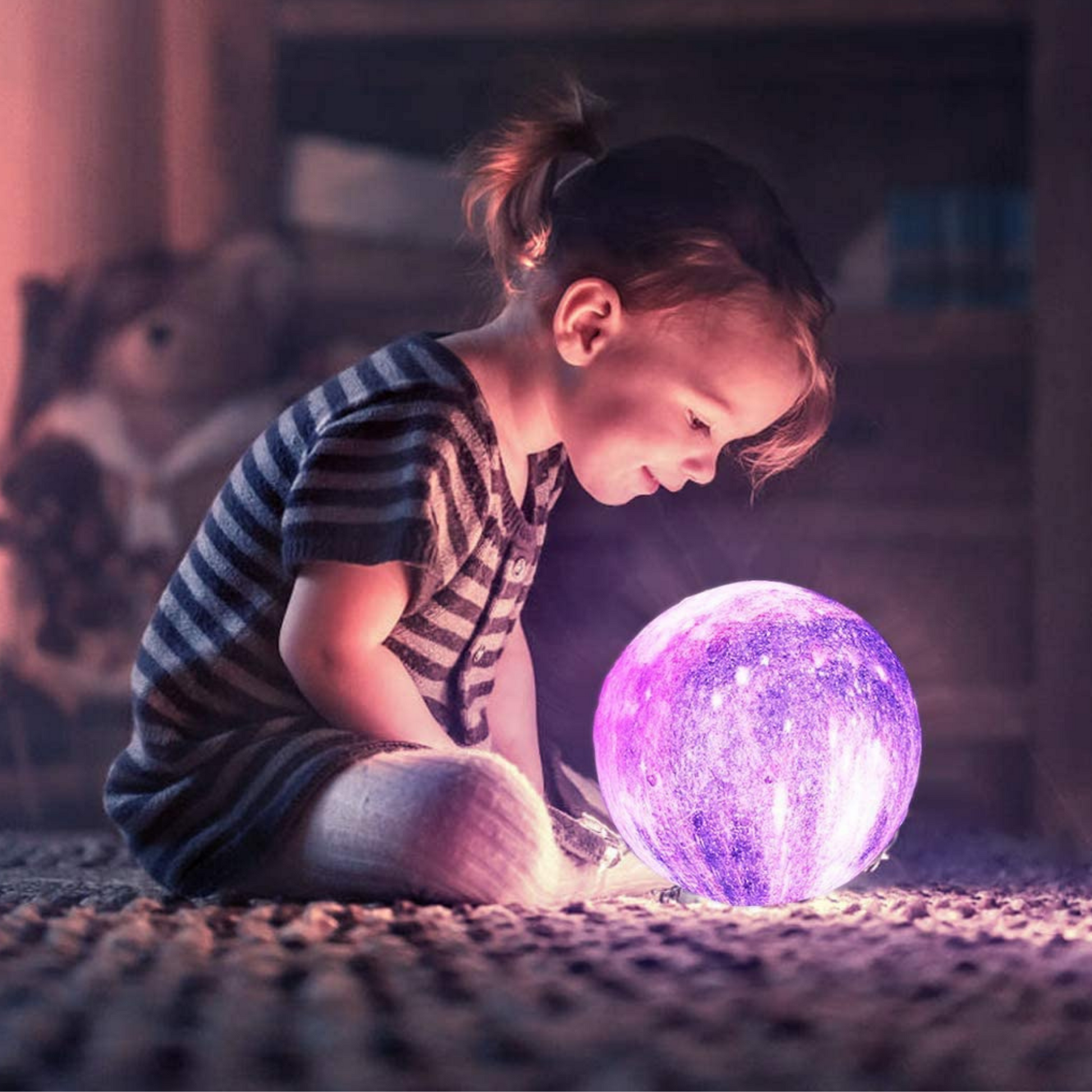 Ever wonder how the real Moon looks like? Now you can feel and hold a realistic version of the Moon in your hands. The Moon Led lamp is a high-quality 3D printing taken from actual galaxy pictures of the Moon. The light intensity is designed to mimic the one found in the real Moon.