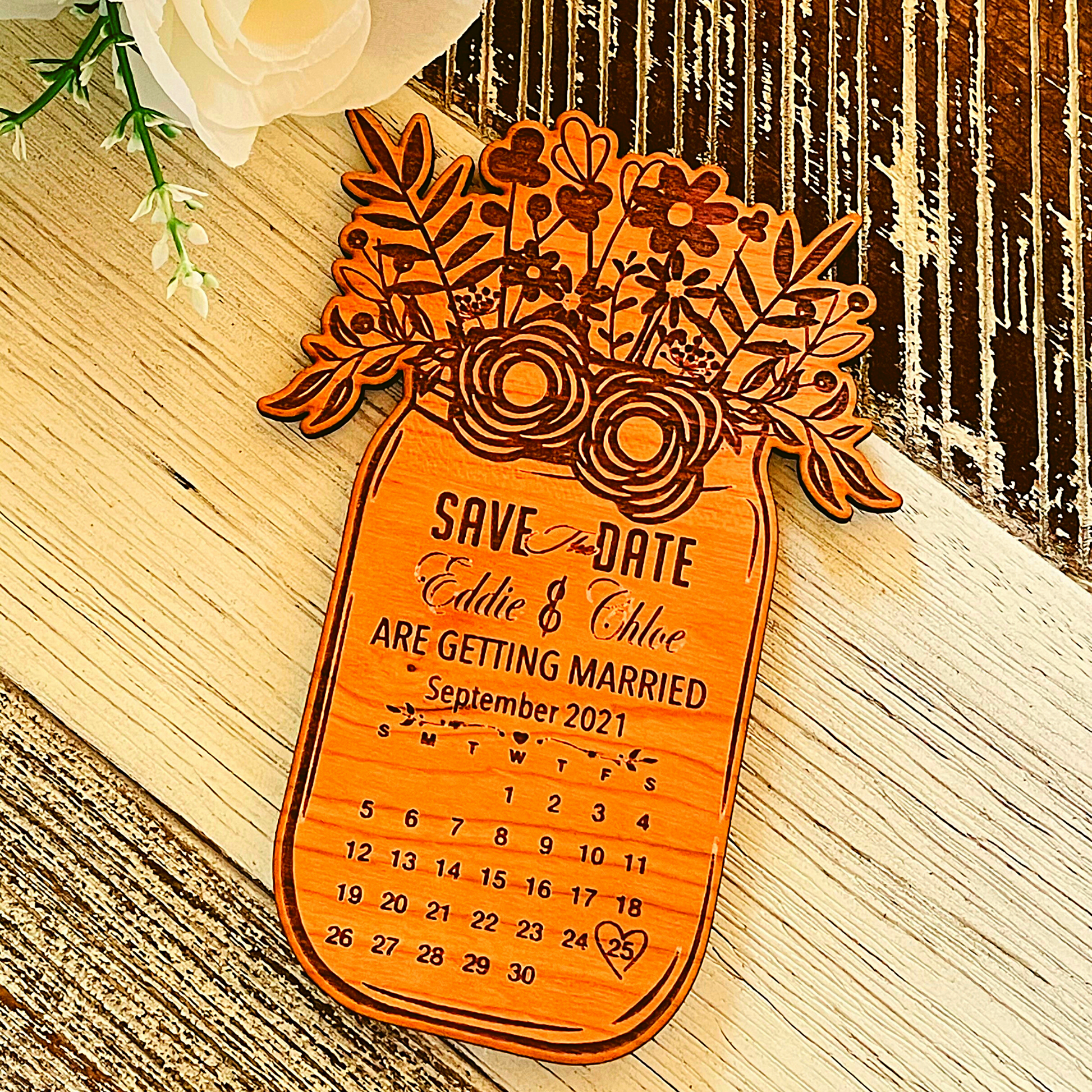 Wooden Mason Jar Save The Date Card For Wedding Anniversary or Engagement Party