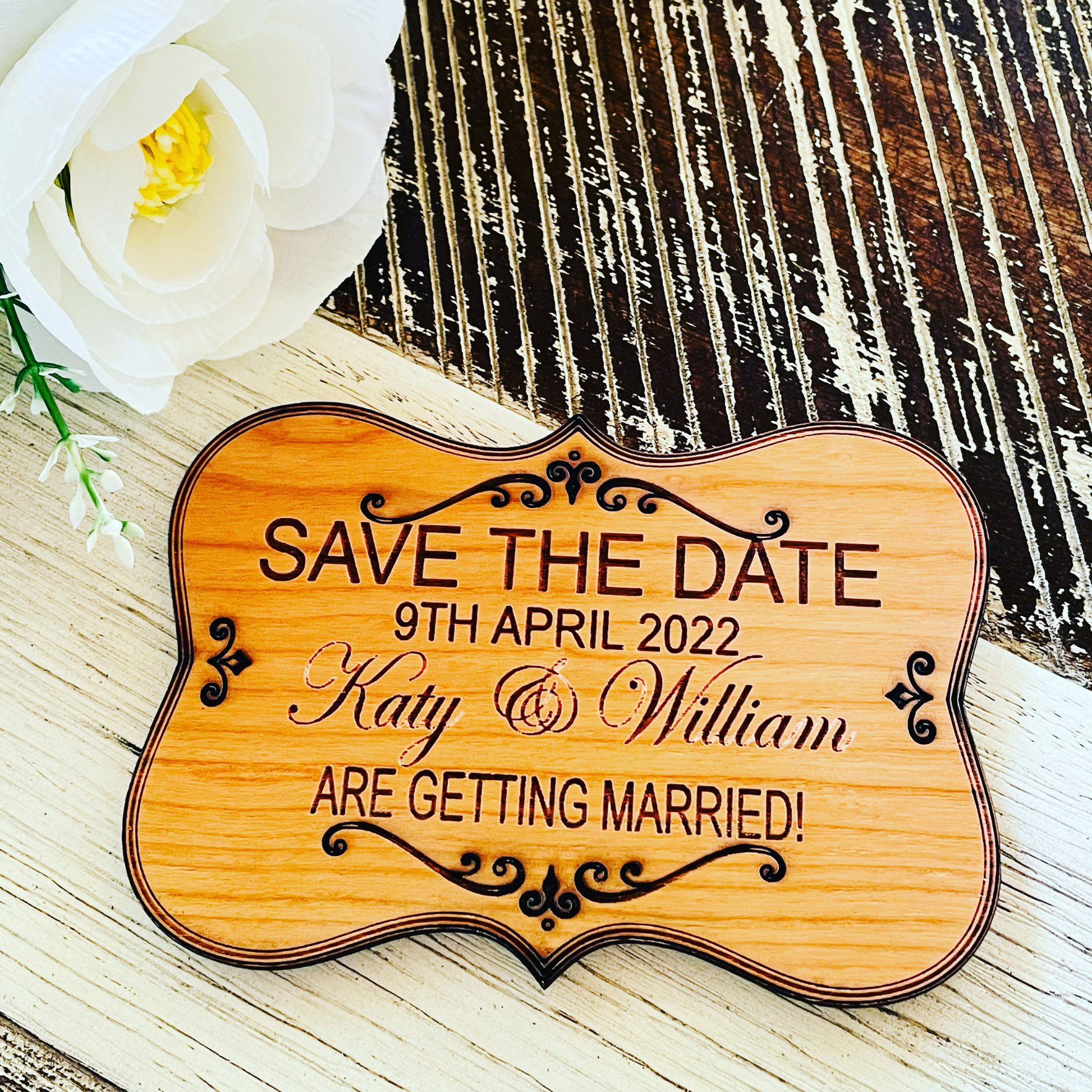 Wooden Royal Save The Date Card For Wedding Anniversary or Engagement Party